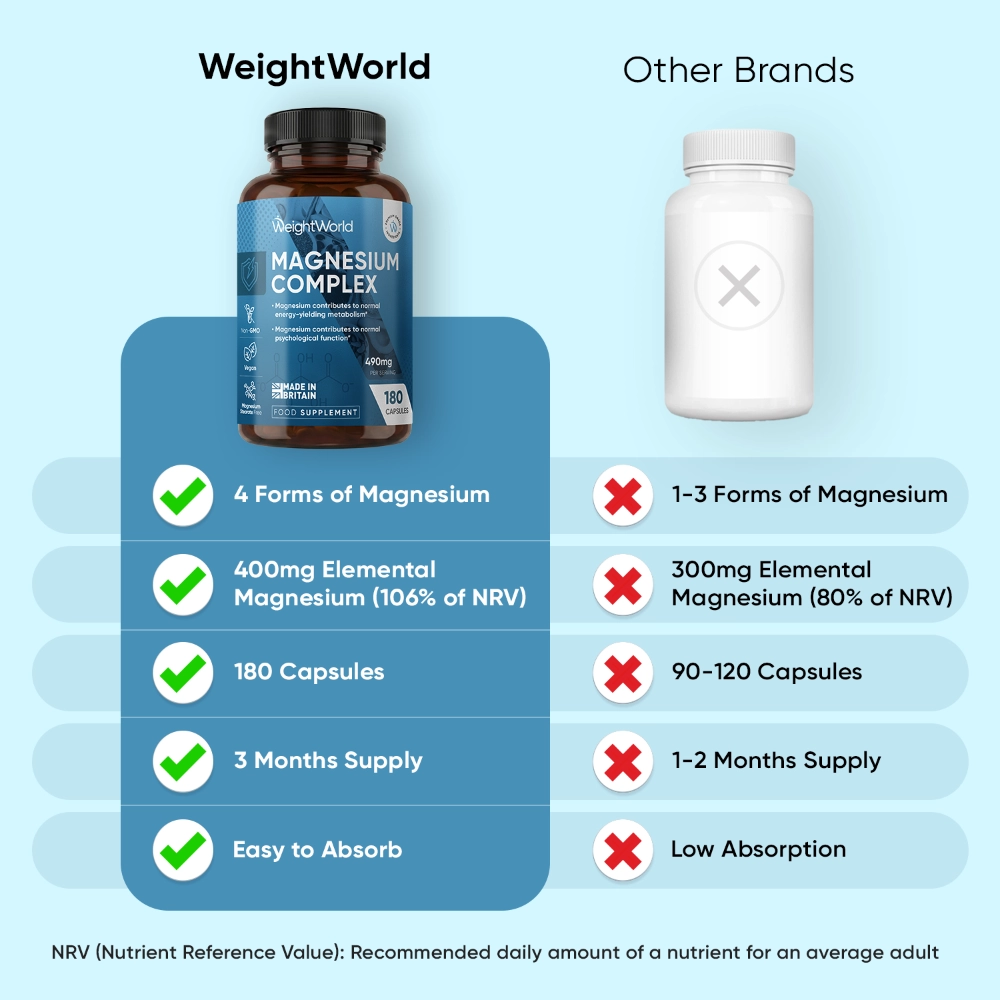 490mg 180 Capsules | Benefits of 4 Forms of Magnesium