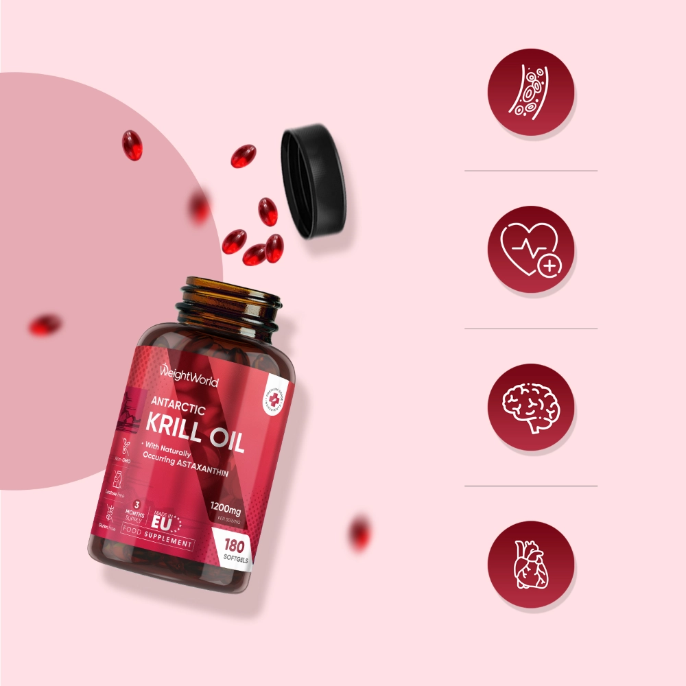 WeightWorld's premium Antarctic Krill Oil Softgels are pure, potent, and convenient. With 180 softgels in one bottle, you receive a 3-month uninterrupted supply in a single purchase. Here's how the key ingredients in these capsules benefit you: