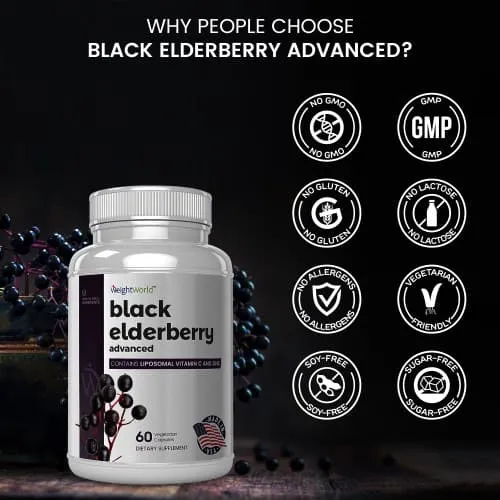 Black elderberries are popular for their high nutritive value and contain key vitamins and minerals that are known to support body immunity. Black elderberry advanced is loaded with the power of 3 wholesome ingredients to strengthen your body and support your fit and active lifestyle. WeightWorld combines the naturally occurring benefits of pure elderberries with the potency of liposomal Vitamin C and Zinc Citrate to deliver nutrition, just the way your body needs it.