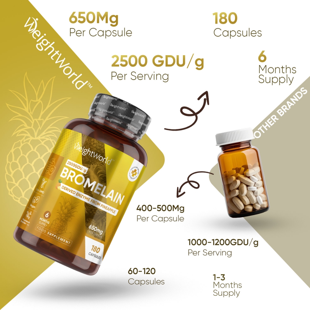 650mg 180 Capsules | 6 Months of Bromelain Support