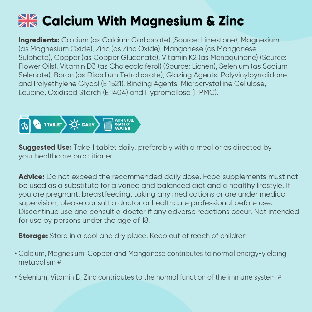 Calcium, Magnesium & Zinc With Vegan Vitamin D3 Tablets