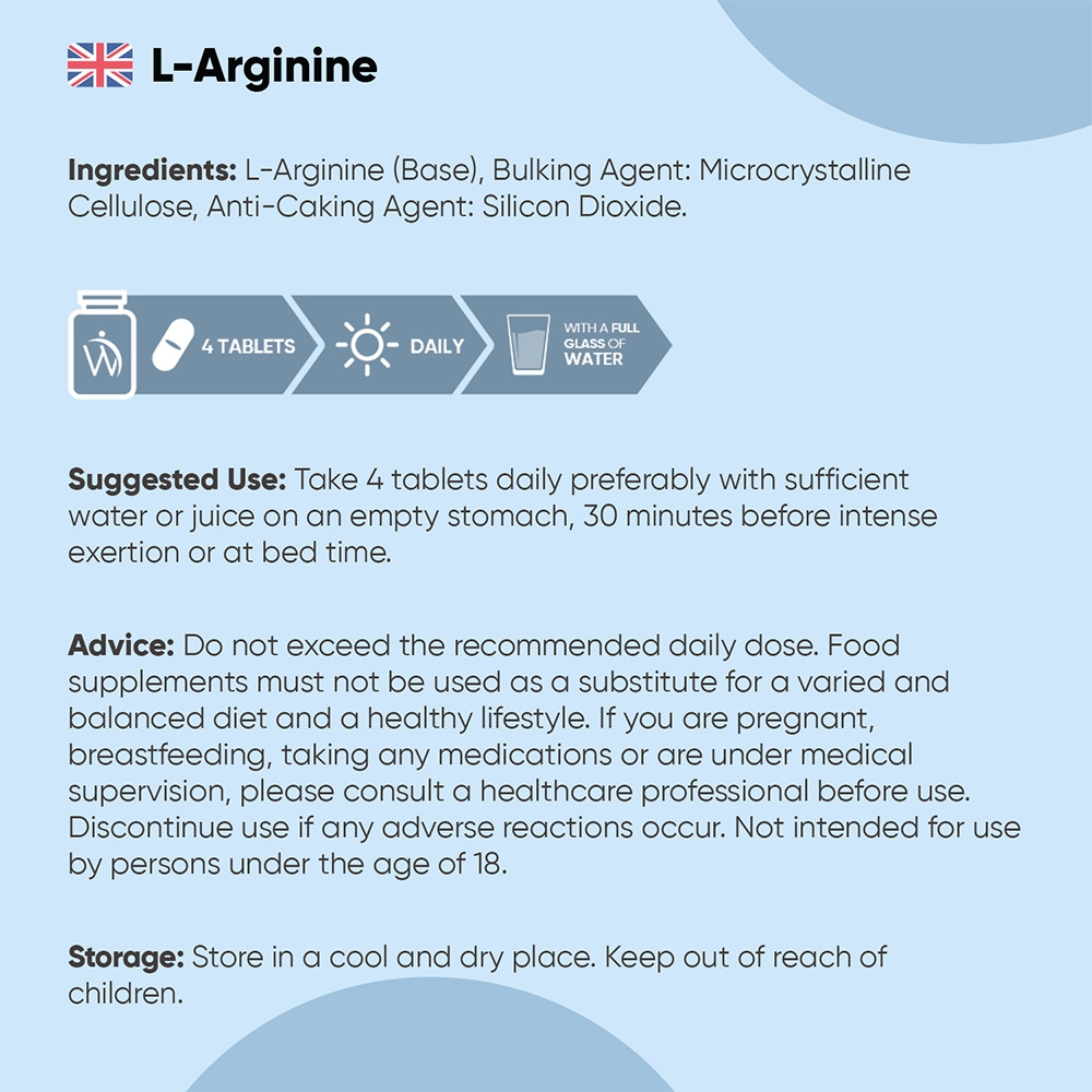 - 4 doses of L-Arginine Tablets daily - Enjoy a 3-month supply