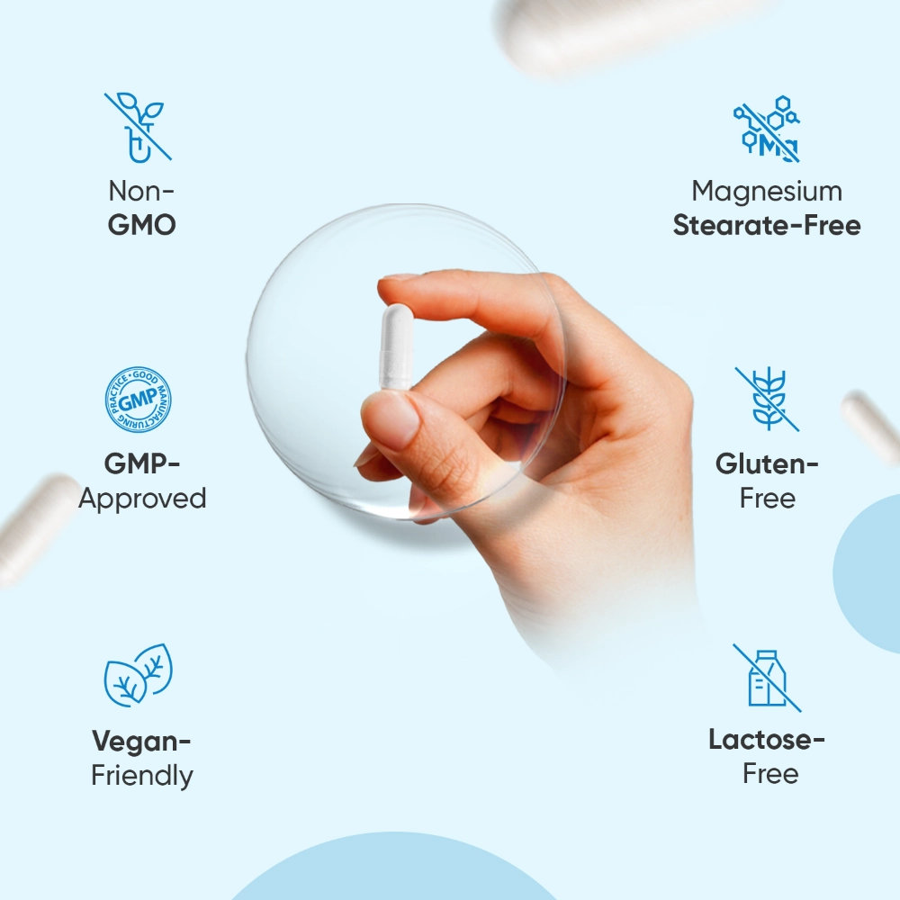 - GMO-free & Magnesium stearate-free formula