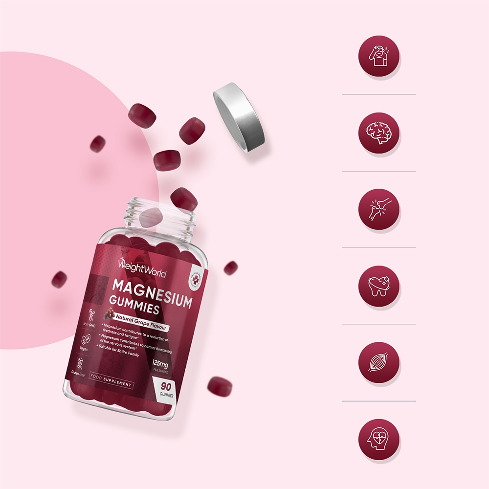 Do you hate to take tablets but need a magnesium boost? If so, then your search ends here! WeightWorld brings you grape-flavoured Magnesium Gummies for adults, a chewable and delicious alternative to magnesium tablets and capsules. Magnesium is known to contribute to electrolyte balance and to a reduction of tiredness and fatigue, making it a must-have for your overall well-being.