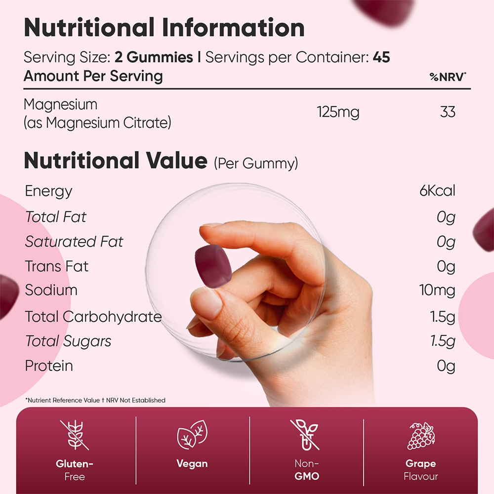 125mg 90 Gummies | Magnesium Goodness In Grape Flavour