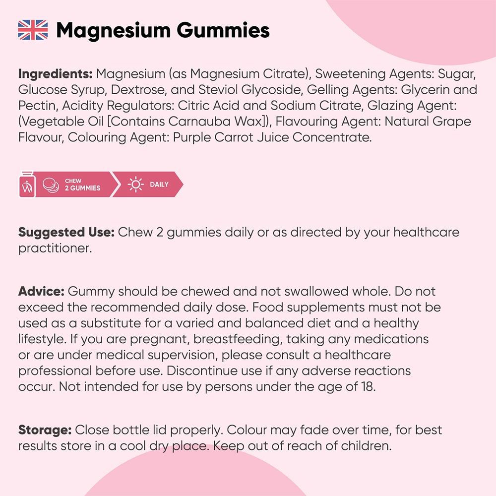 • Our magnesium gummy is vegan, dairy-free and gluten-free, perfectly suitable for people with varying dietary choices