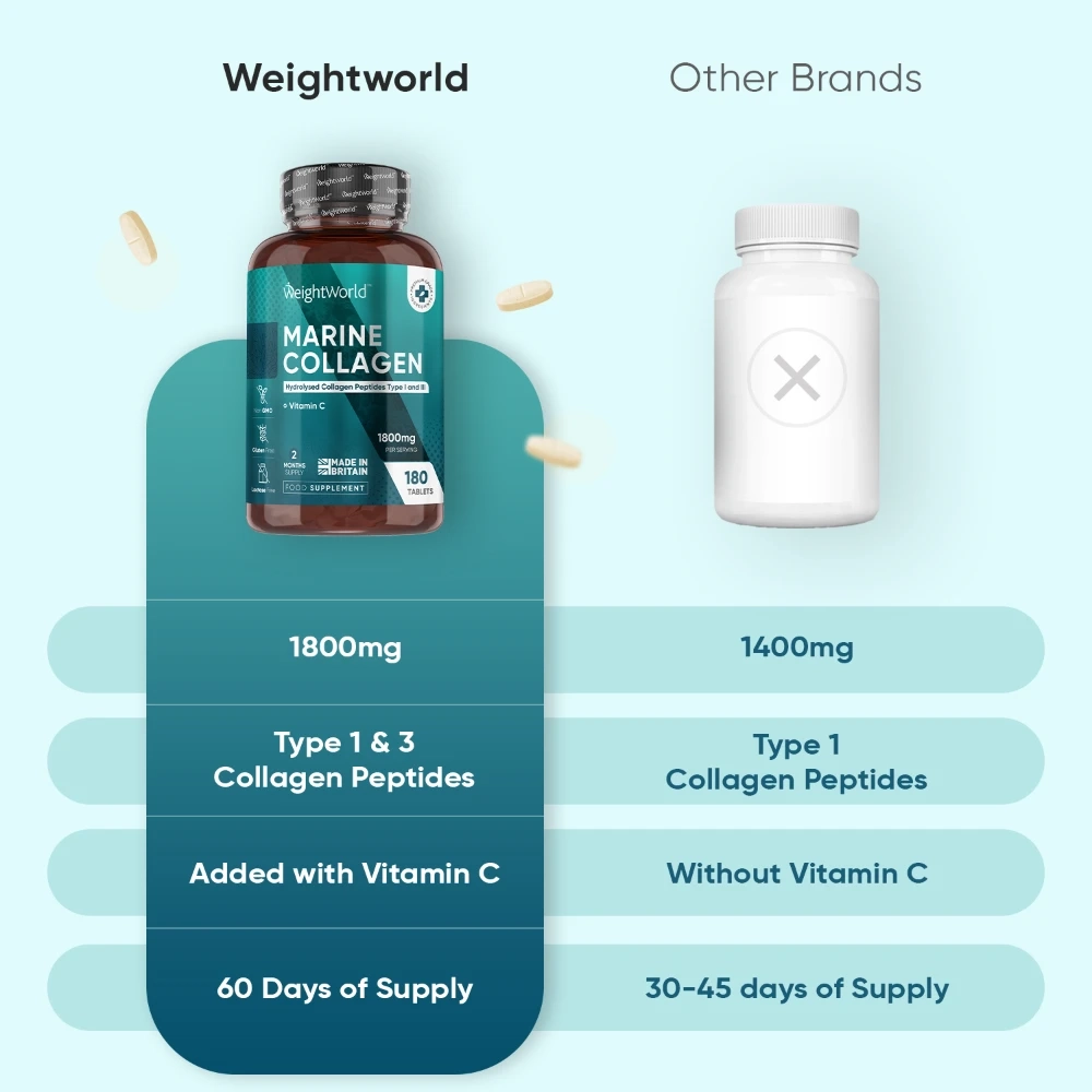 1800mg 180 Tablets | For Skin, Joints, Muscles & More
