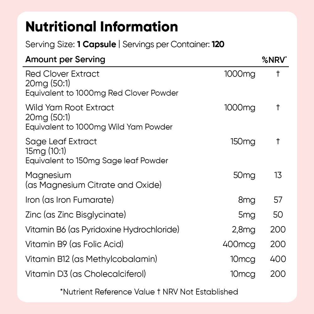 - Wild yam and red clover help to maintain a calm and comfortable menopause**