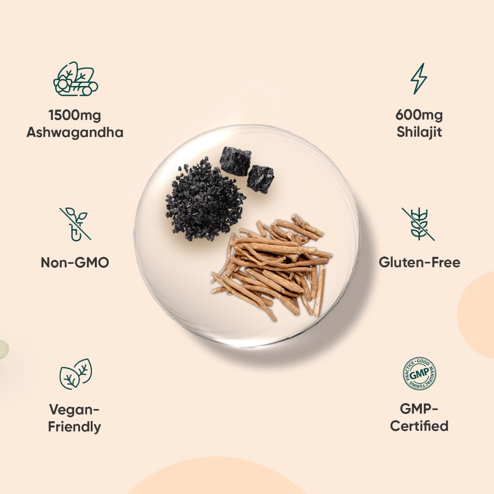 180 Ashwagandha Tablets + 50g Shilajit Resin Bottle | For Men's Wellness