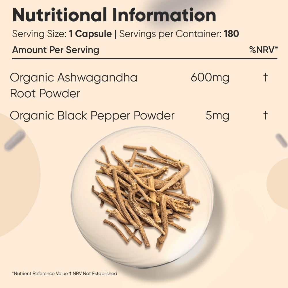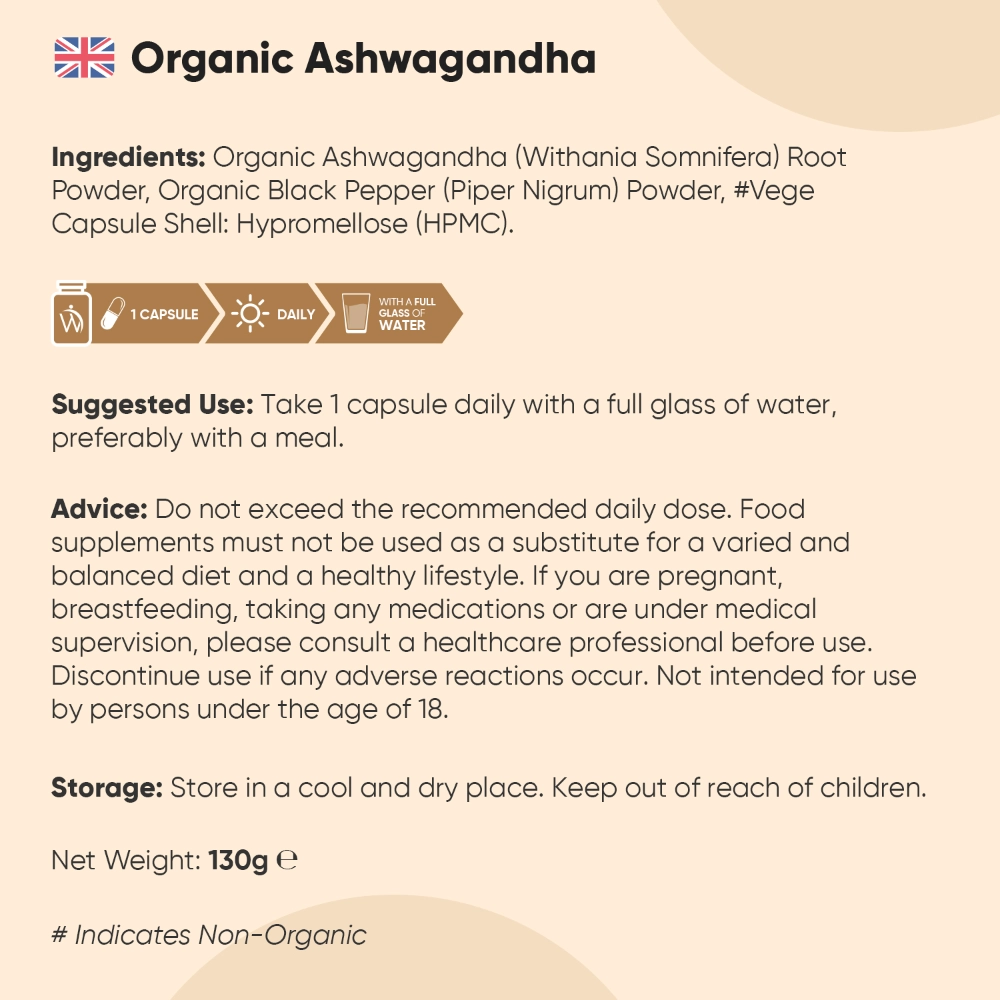- Vegan Organic Ashwagandha Capsules, perfect for vegans and vegetarians