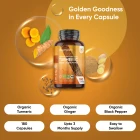 Unlike the regular turmeric supplements, ours is enriched with black pepper and ginger, giving you nature’s golden trio in one easy capsule. These turmeric supplements are certified organic, vegan, and GMO-free, making them a reliable and convenient choice for getting the natural goodness of turmeric daily.