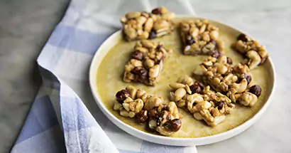 - In a small saucepan, bring the honey to a boil with peanut butter and Coconut Oil and simmer for 5 minutes adding, if necessary, the chosen spices.