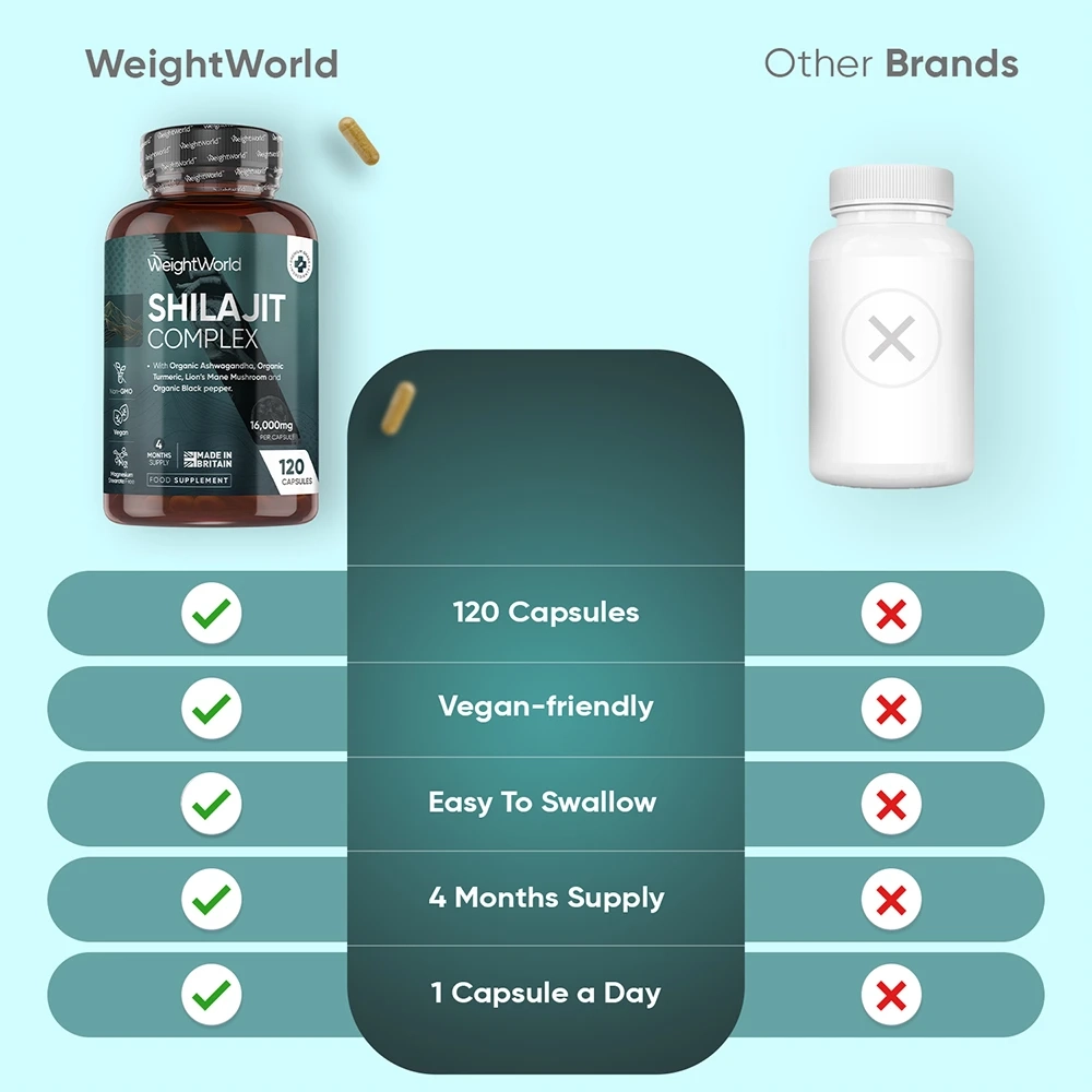 - Massive 16,000mg of pure shilajit powder per capsule