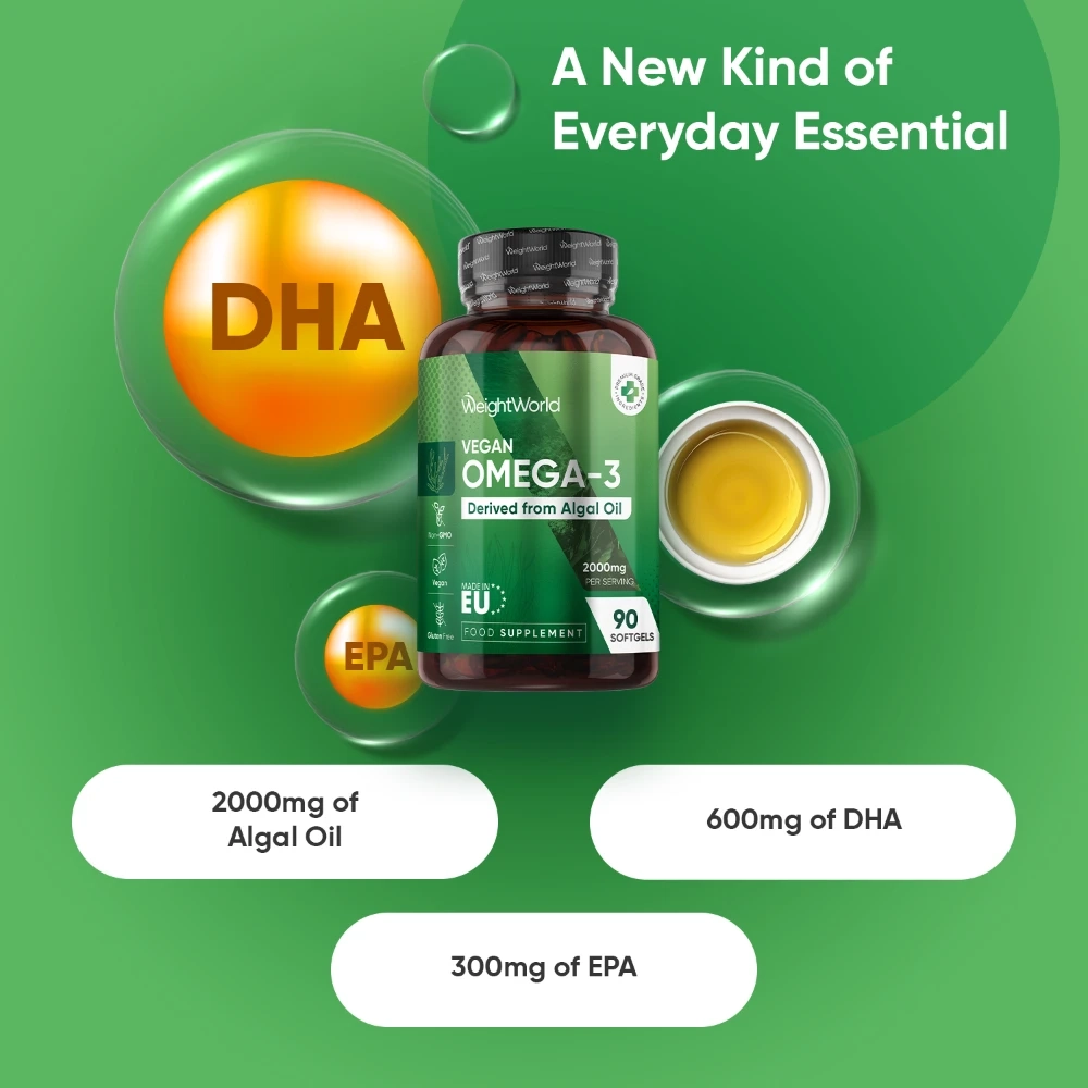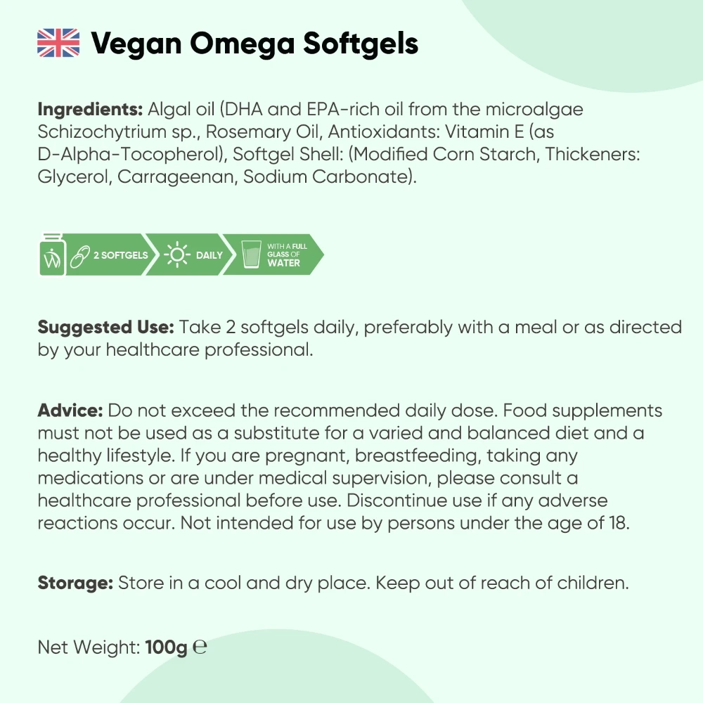- Vegan omega-3 supplement, naturally rich in DHA & EPA