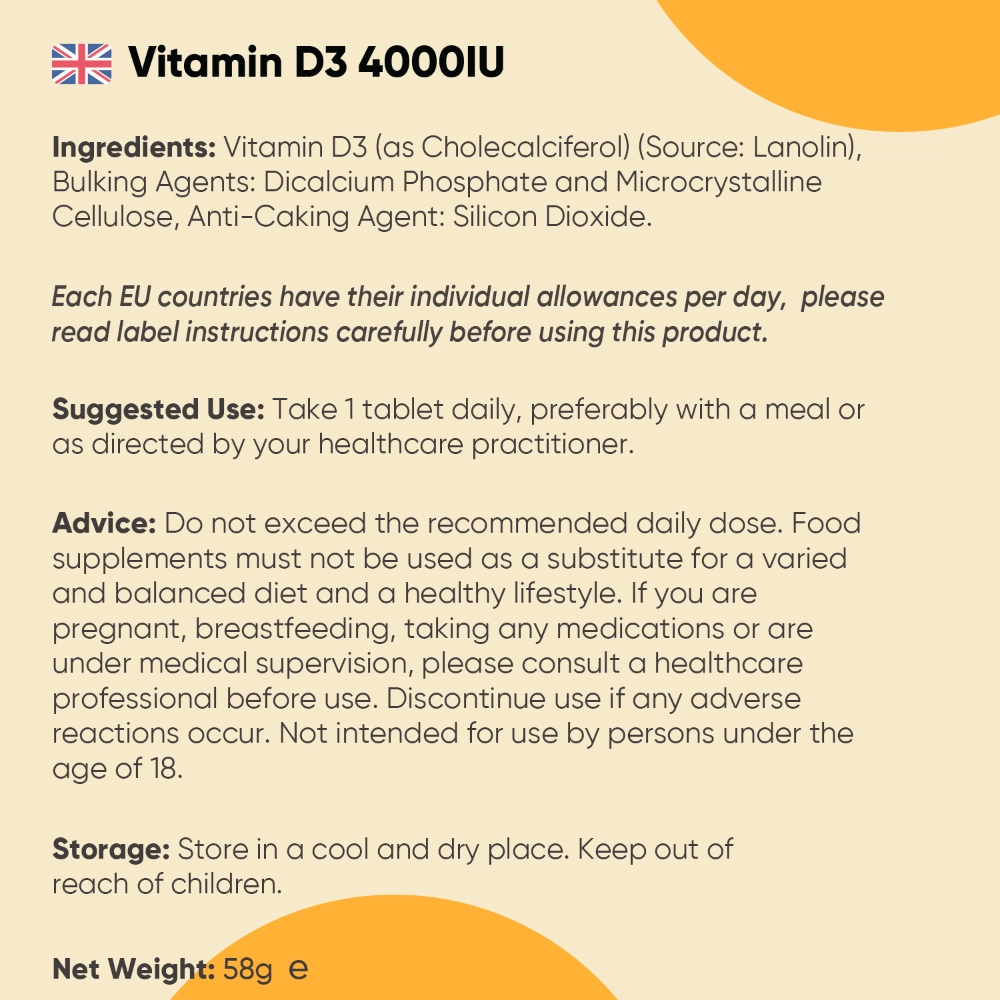 4000IU 400 Tablets | Vegetarian Source of Vitamin D3